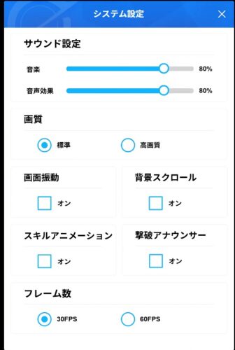 | スキルアニメーション、撃破アナウンサー | オフ |