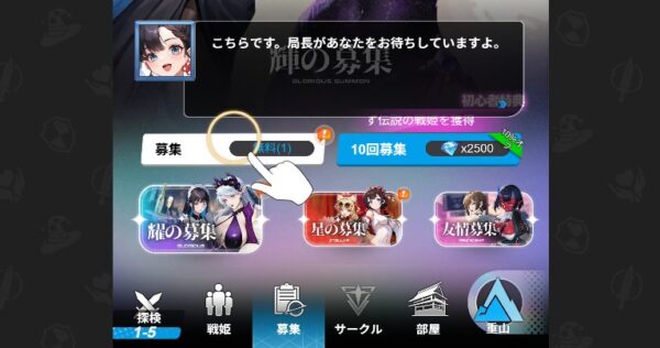 | Step.2 | 報酬を受け取ってガチャを引く | チュートリアルが終わったら、メールボックスやミッションから事前登録報酬やボーナスを全て受け取ります。そして、受け取ったアイテムでスカウトして戦姫をゲットします。 |