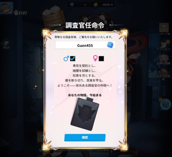 まずはゲームの基本操作や世界観を把握するために、チュートリアルに従って探索を進めていきます。最初は性別を選択していきます。 探検1-3クリアでショップ開放 探索1-4クリアで1回戦姫を募集